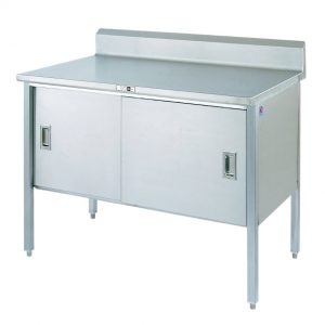 Stainless Steel Work Table with Cabinet & Backsplash 60″ x 30″ x 35″