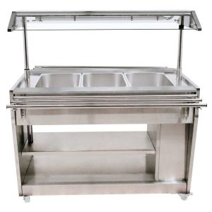 Omcan’s 44-inch stainless steel electric steam table with cutting board and undershelf is the ideal unit for buffet and catering services. This unit is intended for dry use and comes with the option of compatible spillage pans for moist heat – sold separately. Durably built with stainless steel construction, our food table comes equipped with a convenient undershelf to store essential serving and kitchen tools, as well as a polycarbonate cutting board for extra workspace. Keep all your hot foods consistently warm and readily available!