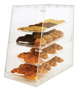 Our sturdy acrylic display cases provide clear view of your freshly baked goods. They feature magnetic-latching rear doors, removable trays and white handles. They are designed for easy restocking and cleaning. Item 80567 & 80569 come with front doors that to ensure your customers have easy access to your delicious pastries anytime. Ideal for cafes, catering companies, concession stands, and more.