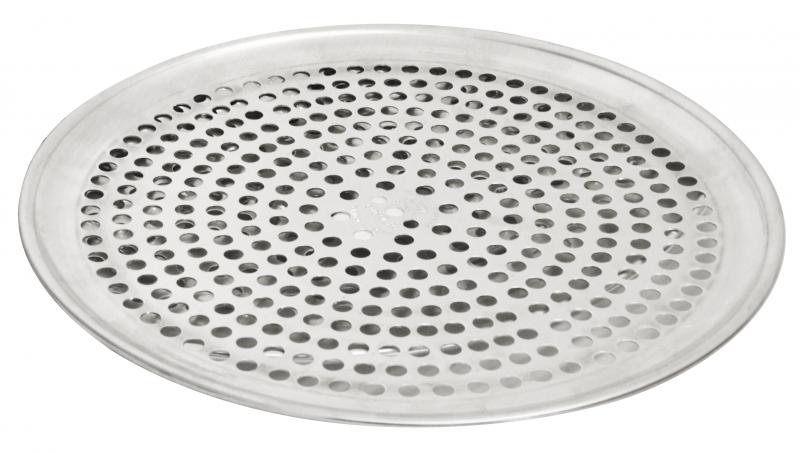 Perforated pizza pans are designed to allow hot air to cook the dough from below, as well as above, ensuring a crispy crust on your pizza in half the time as a solid pizza pan. Perfect for thin crust pizzas and Focaccia. 18 Gauge (1.0 mm).