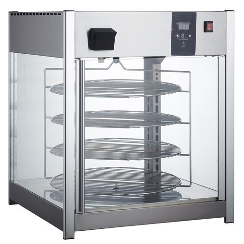 Brilliantly display your pizzas and increase impulse sales with the BakeMax BMPW418 Titan Series Pizza Warmer. Designed with a stainless-steel construction and able to hold (4) 18” Pizzas on its rotational chrome plated shelves. Keep your pizza at the ideal temperature with digital temperature and humidity controls and show it off with interior florescent lighting. This unit is great for any pizza shop or concession stand.