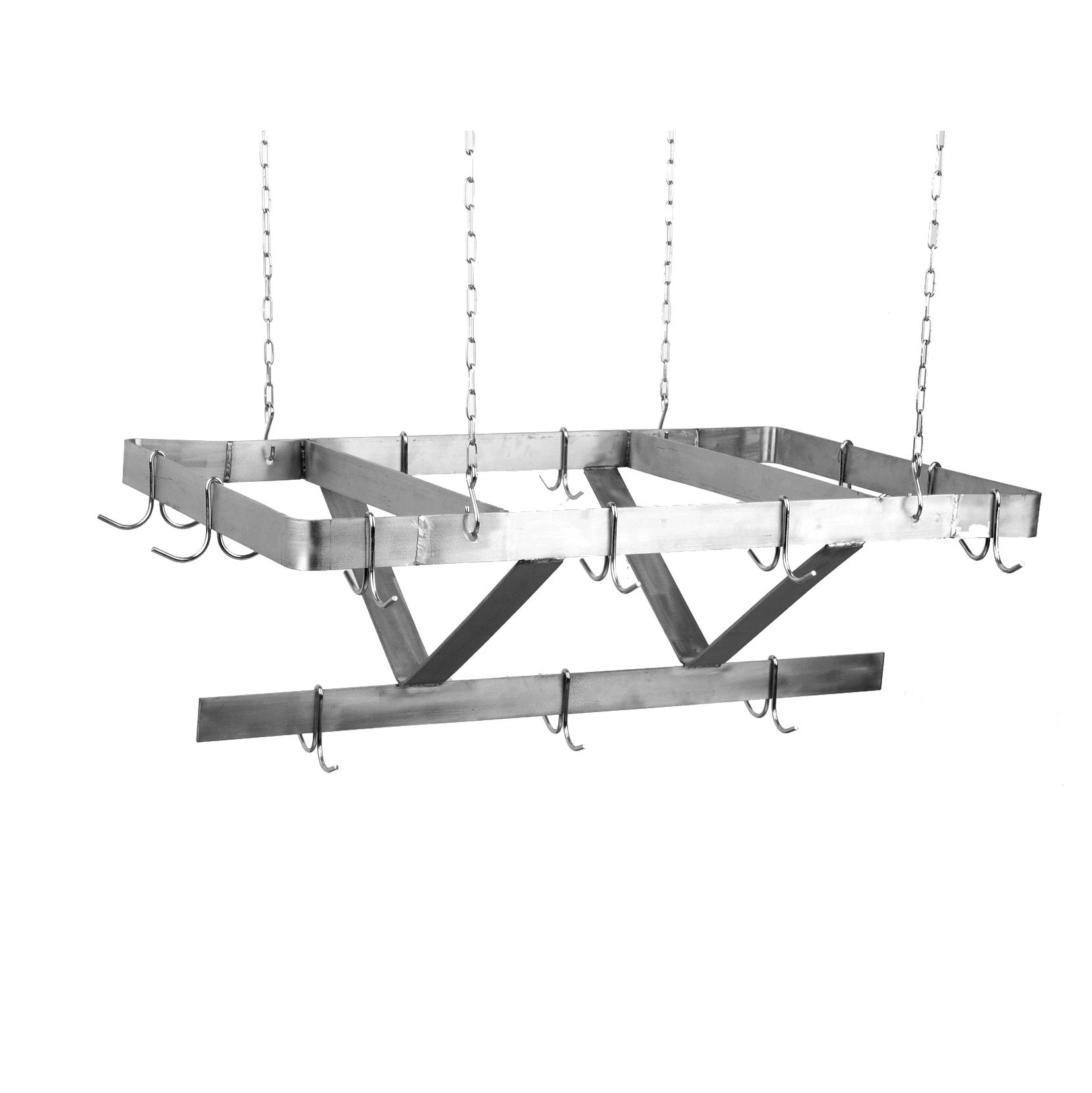 This ceiling mounted pot rack is perfect for any restaurant or commercial kitchen. It’s been made with a heavy duty 430 stainless steel. It comes in a variety of different widths.