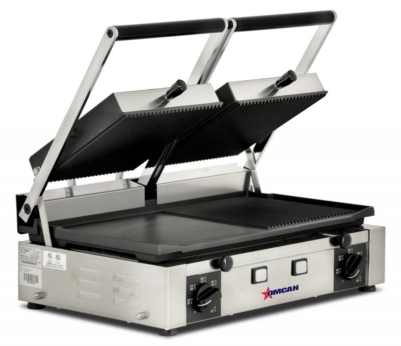 Elite Series 10″ x 19″ Double Panini Grill with Ribbed Top and 1/2 Grooved & Smooth Bottom Grill Surface