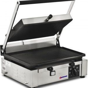 Elite Series Single Panini Grill with Grooved Top and Smooth Bottom Grill Surface