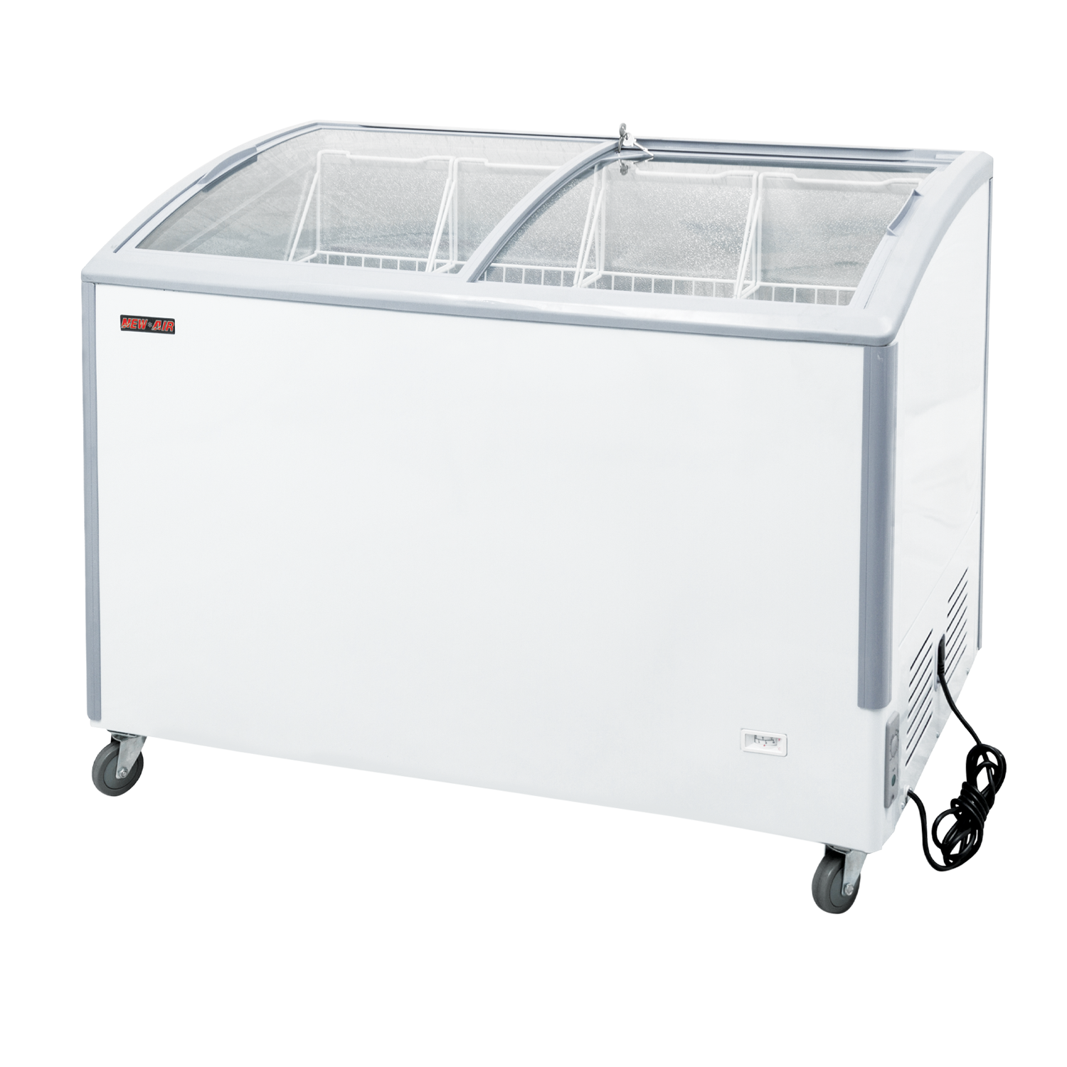 The NIF-49-CG ice cream freezer boasts an easy to access, curved sliding glass design, 4 spacious wire baskets and a built-in lock for additional security when not in use.