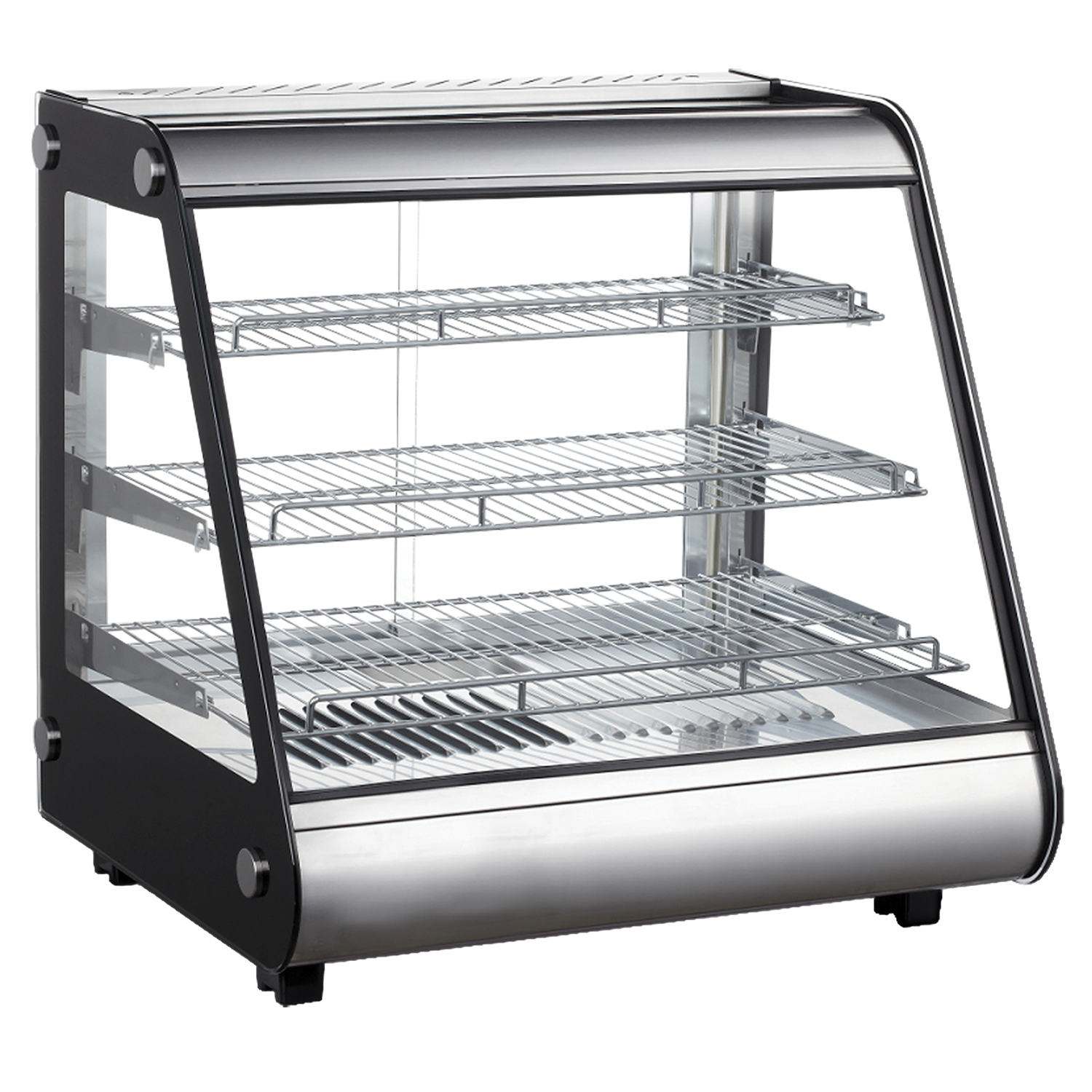 The NDC-016-HT countertop heated display case is an ideal fit for restaurants, cafes, convenience stores and supermarkets. Easily display your products in an attractive glass sliding-door case on 3 adjustable chrome-plated shelves and a frame made of stainless steel.