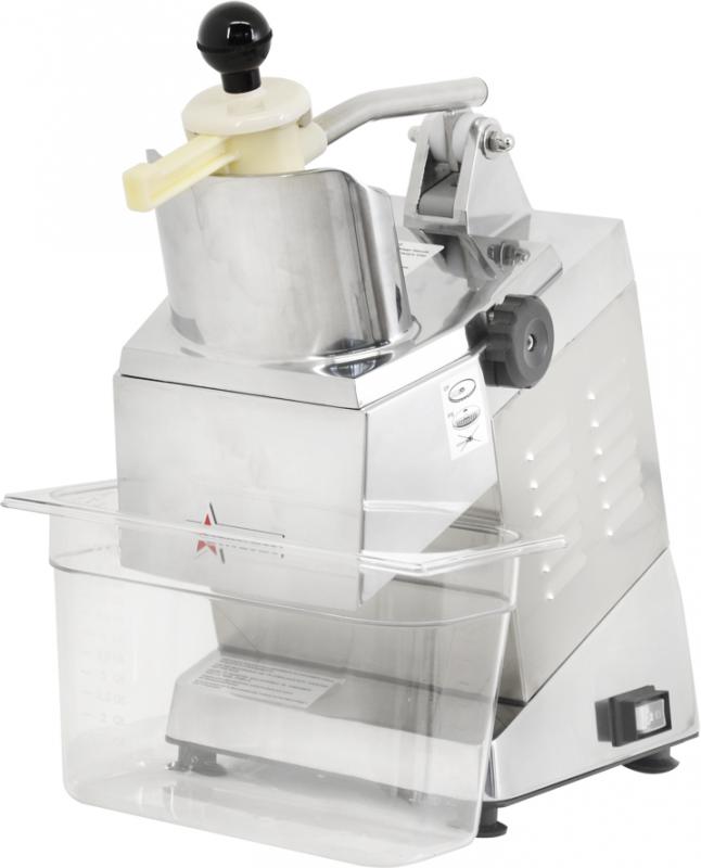 This vegetable cutter is easy to use for all types of vegetables, cheese, and many other products. The hinged lid allows for easy cleaning and changing of disks. Wide selections of discs are available. Made of aluminum allow and s/s construction.