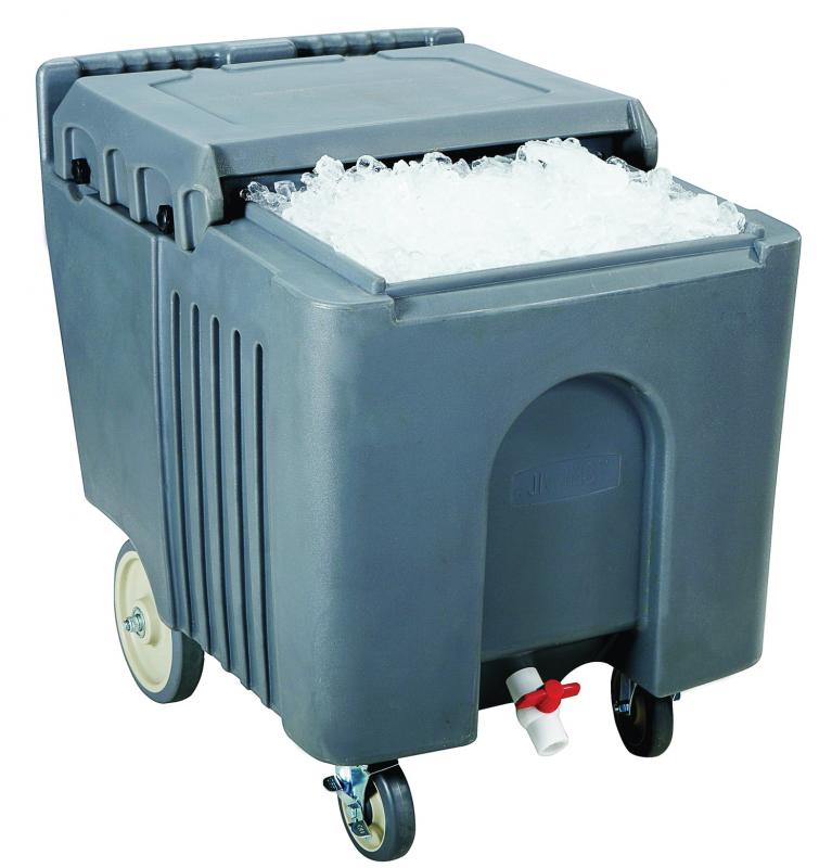 Omcan’s insulated ice caddy offers the best solution to keep 125- lb of ice cold thanks to its thick layer of Polyurethane foam insulation. This unit also features 2 front wheels with brakes with 2 larger rear wheels for easy mobility. Made of high quality Polyethylene exterior to ensure that the product will not dent or rust for a long time.