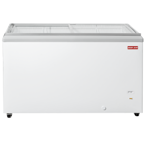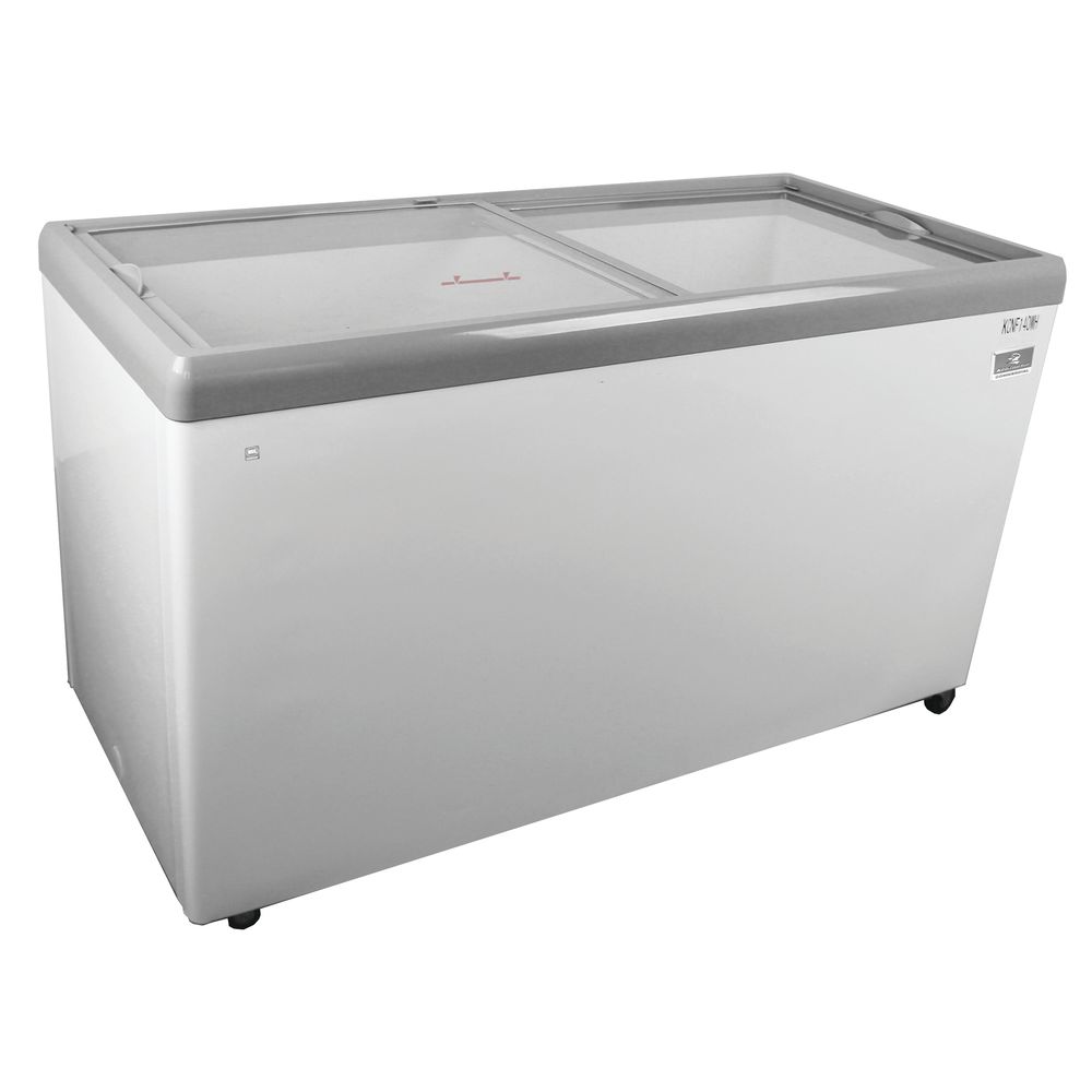 The 15 cu ft novelty chest freezer can be used for merchandising frozen treats and novelty ice cream. The tempered sliding glass lid keeps allows for maximum visibility of contents and helps maintain proper temperature range of -10° to 10°F. The Interior is a white painted steel while the exterior features a white textured painted steel. This novelty freezer includes one food storage basket and has a NSF certified thermometer. Locking lid with key is standard. Additionally this freezer comes with a bottom drain with plug for easy cleaning and defrost. Mounted on heavy-duty swivel casters (two locking).