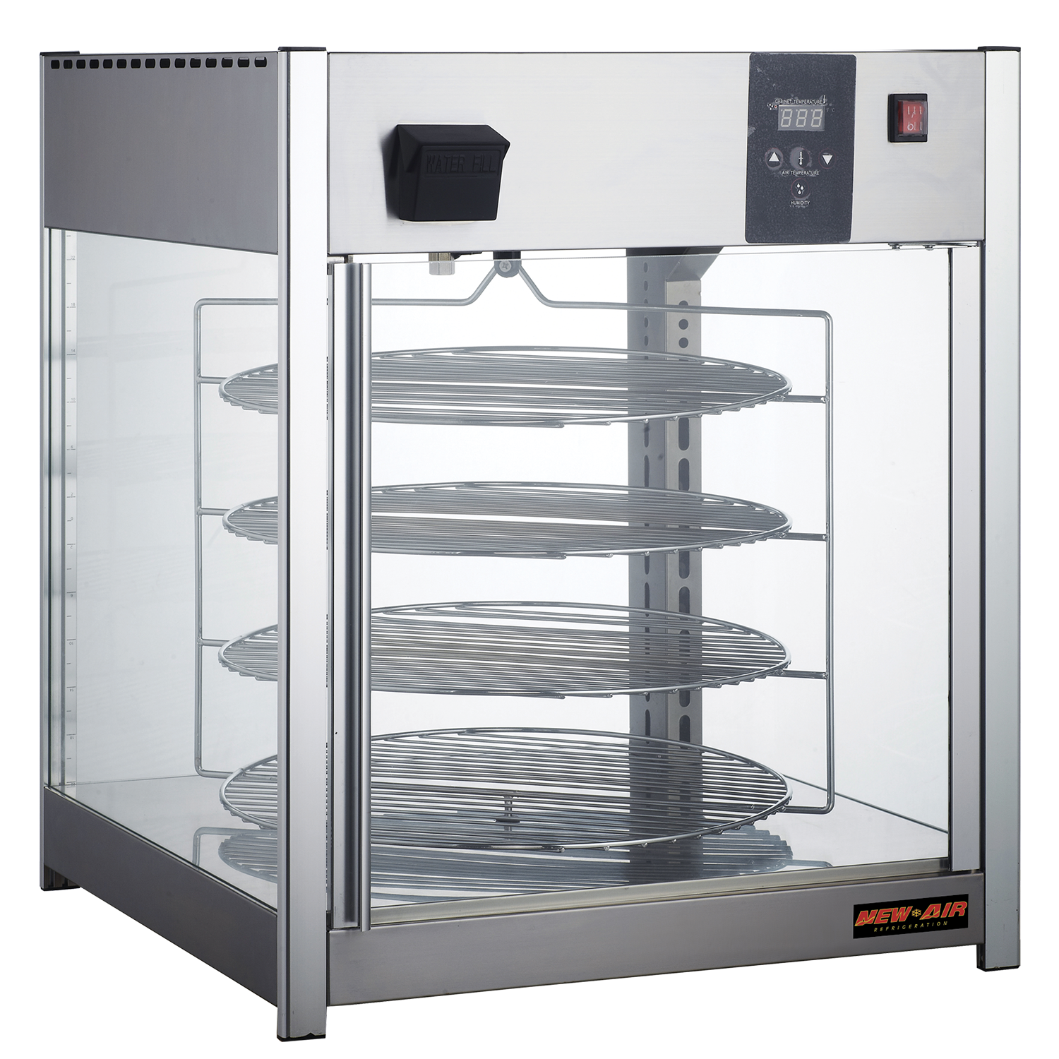 The NDC-25-PHT countertop pizza warmer is an ideal fit for restaurants, cafes, convenience stores and supermarkets. Display and warm your pizza in an attractive square glass display case on 4 rotating shelves.