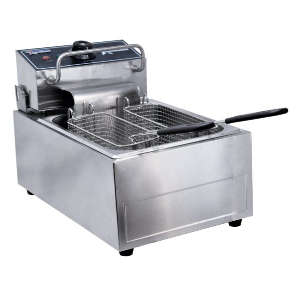 This counter top electrical deep fryers is ideal for small to medium applications. The body is made of stainless steel to allow easy cleaning. Equipped with a limit switch to prevent overheating. This fryer is controlled by a thermostat. Operating temperatures range from 50-190C/122-374F. Comes with fryer baskets.