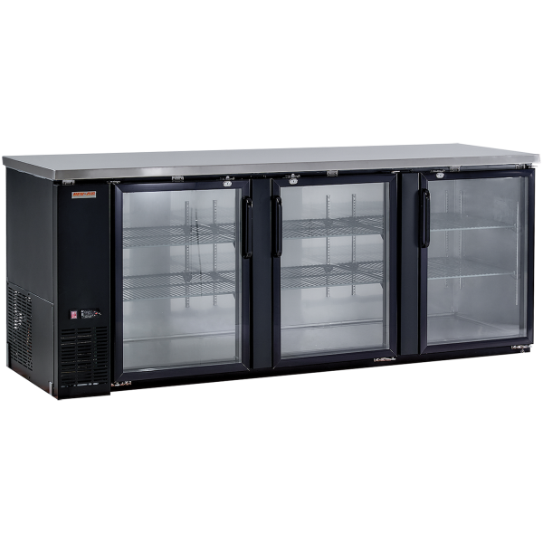 The NBB-90-SG glass door back bar is the perfect choice for wine and beverage service. This model boasts 3 tempered glass doors and a spacious interior cabinet. Rounded corners mean the interior is easy to clean and the lockable cabinet keeps merchandise secure around the clock.
